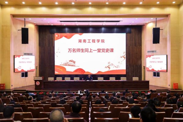 此次党史学习教育课设立主会场和100余个分会场,全校万余名师生采用“现场教学+网络直播”的方式集中收看党史教育课。