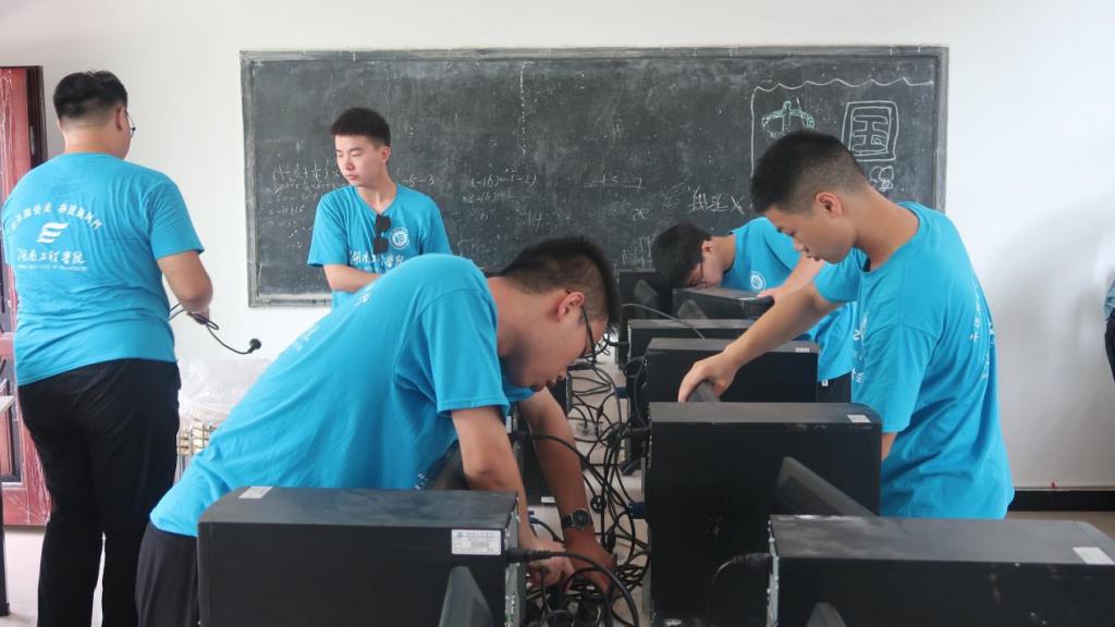 " 由于条件限制,当地村户家的孩子们大多对于‘计算机’这一名词感到陌生,而对于互联网的理解更是仅仅限于手机的一方天地。" MILE米乐官方网站乡村振兴驻村工作队队长曾曙林说。了解到这一情况后,实践团队在铺坪村村部进行了实地考察与规划,并对 " 乡村大脑 " 赋能乡村实践基地的布置进行了初步整理与细节修改。团队成员将工作内容拆解,分小组进行了长桌排布、电脑拼装与电线接通、网线连接与房间打扫布置,力求为当地学生创造最优质的上机学习环境。