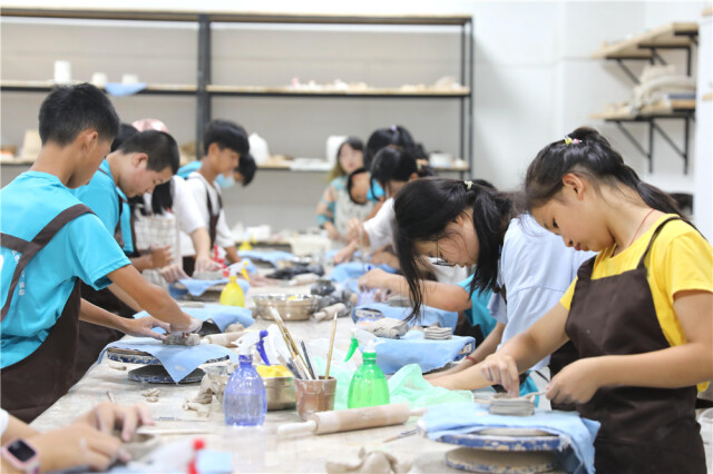 恰逢学校第六届教职工摄影书画大赛优秀作品展展出,学校还为中学生们“烹饪”了一道丰富多彩的艺术大餐。看展览,做陶艺,“大餐”既饱眼福,又有动手的乐趣。老师教同学们采用泥条盘筑法,搓捏压粘,一坨坨泥巴就变成了一个个漂亮的茶杯。在泥巴世界里,大家充分体验了陶艺制作的乐趣。