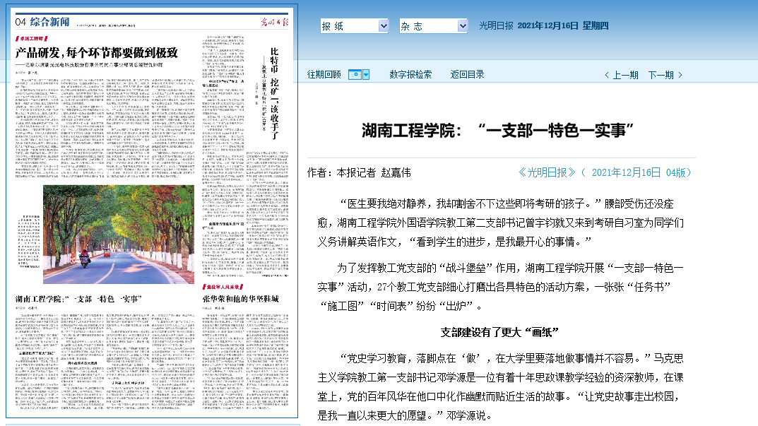 “MILE米乐官方网站通过深入开展‘一支部一特色一实事’活动,让党建引领和事业发展互融互促。未来,学校还将继续依托各基层党支部自身特点,创新党建活动形式和载体,将党史学习教育转换为立德树人、为群众办实事的实际行动。”MILE米乐官方网站党委书记陈岳堂说。(本报记者 赵嘉伟)