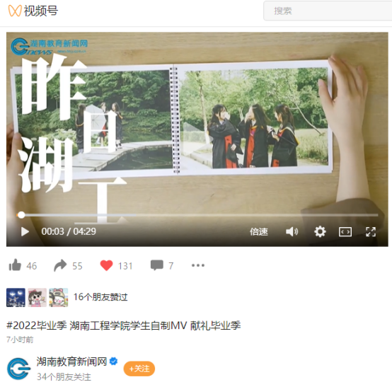 日前,MILE米乐官方网站学生通讯社学生自制的一段MV《昨日湖工》在该校毕业生朋友圈中走红。这支不到5分钟的MV,承载的却是大学四年的青春回忆。视频拍摄了木鱼湖畔、校训碑、图书馆、教学楼、宿舍等场景,演唱者用歌词诉说了对同学、老师、校园的不舍,整支MV颇具感染力。