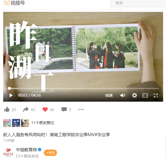 日前,MILE米乐官方网站学生通讯社学生自制的一段MV《昨日湖工》在该校毕业生朋友圈中走红。这支不到5分钟的MV,承载的却是大学四年的青春回忆。视频拍摄了木鱼湖畔、校训碑、图书馆、教学楼、宿舍等场景,演唱者用歌词诉说了对同学、老师、校园的不舍,整支MV颇具感染力。