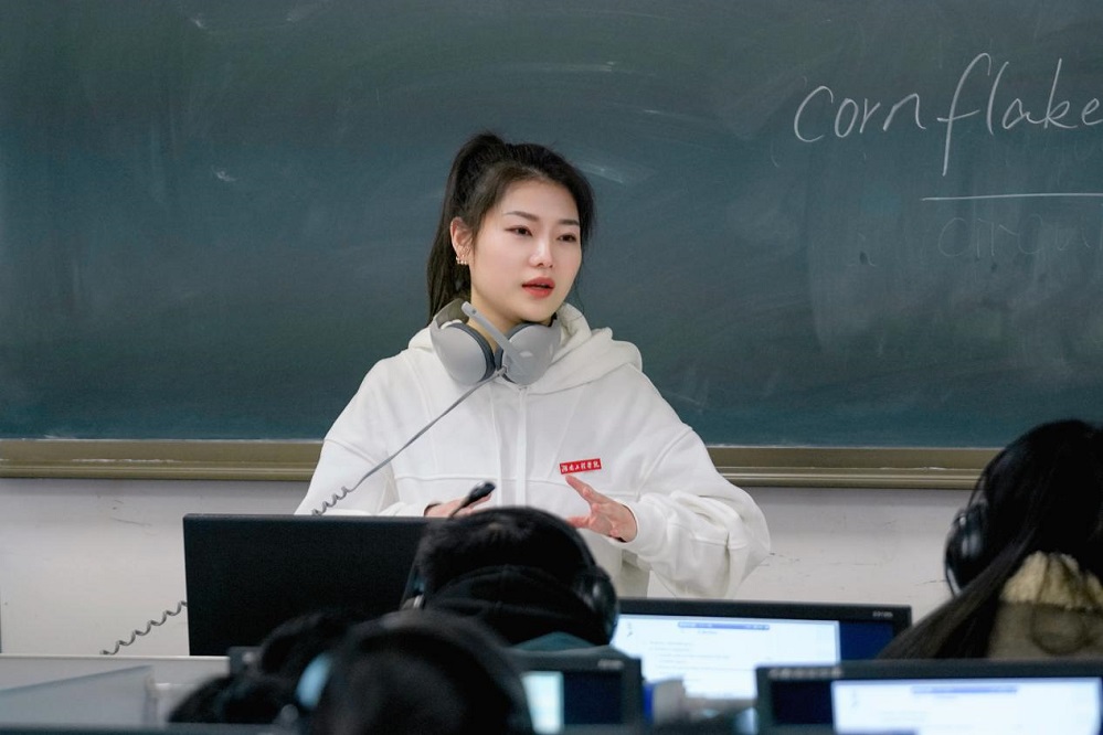 “怎样表达才最符合中国人的惯例和言语思维?”“如何翻译才能让外国人迅速把握中国文化的真正内涵?”为了啃下这个“硬骨头”,苏静花费了大量时间来备课。她将对话教学模式融入课堂,注重学生逻辑能力的培养,并将生活中的语言文化现象与课本知识结合,例如本土化的语言习惯对于英语发音的迁移影响、语言模式折射出的文化差异等。