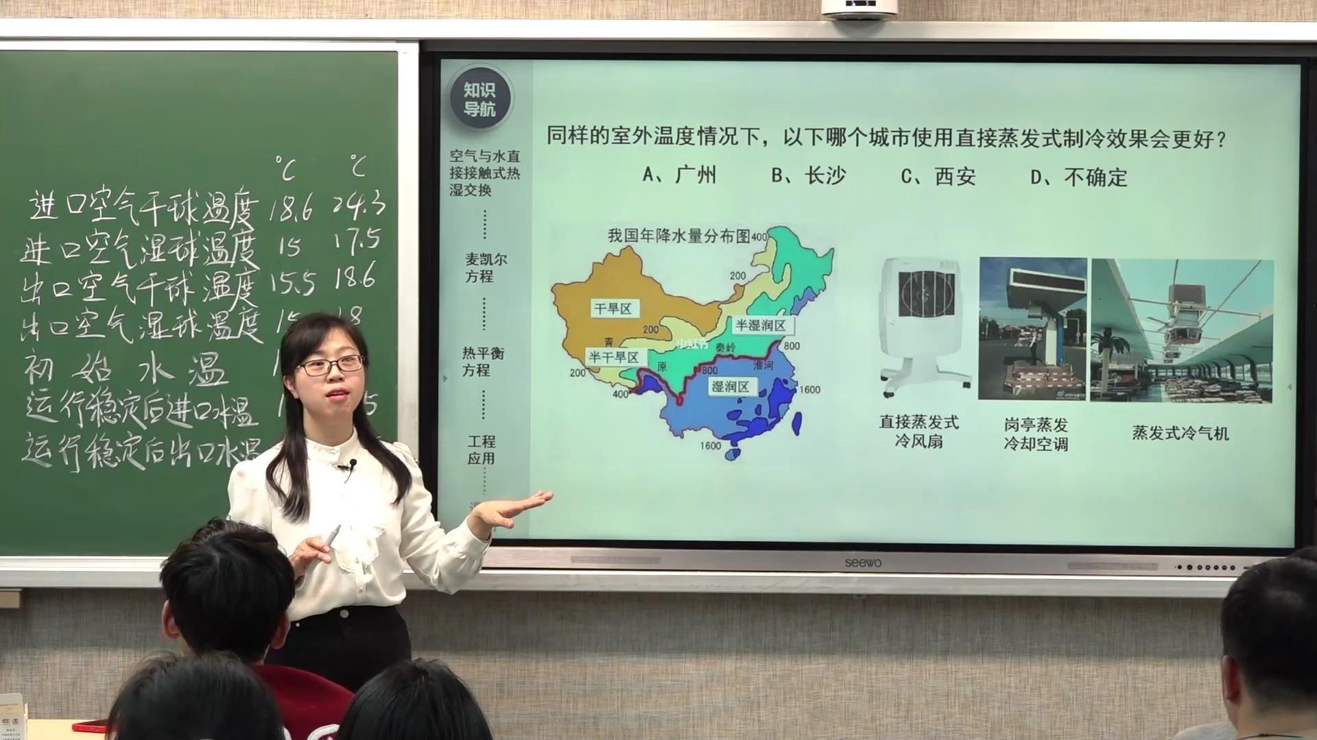 “我们会引入一个实际的项目,由这个项目去关联相关的知识点。比如引入某酒店的中央空调系统设计,但不是一上来就让学生系统地设计整个酒店的中央空调系统,而是将不同的项目目标与对应的课程知识点结合起来。比如酒店客房的需求是设计风机盘管,其对应的知识点有间接接触式热湿设备、空气热湿处理方法、表面传热传质等。再比如室内泳池的需求是设计除湿设备,其对应的知识点有空气热湿处理方法和热湿同时传递等。”