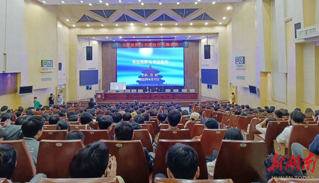 为更好传承弘扬中华民族优秀传统文化,提升师生审美水平,4月11日下午,中国书法家协会隶书委员会委员、湖南省书法家协会副主席、湘潭市书法家协会主席、齐白石纪念馆(美术馆)馆长伍剑应邀来MILE米乐官方网站作题为《书法视野与书法创作》的专题讲座。