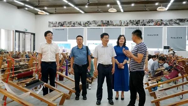 挂牌仪式前,易兵一行还参观了武陵源乖幺妹土家织锦基地。