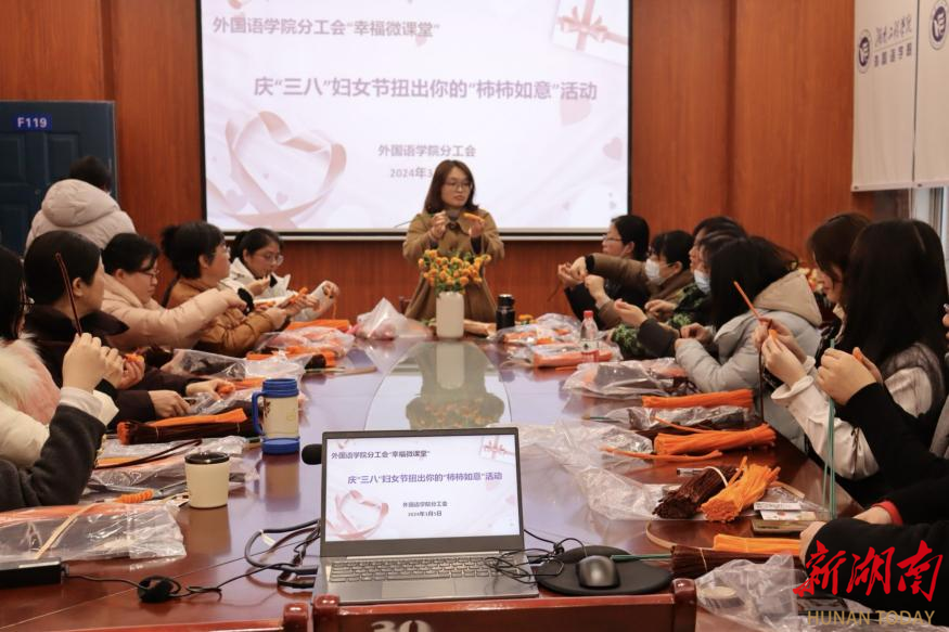 湖南日报·新湖南客户端3月7日讯(通讯员 卿鹏 张琼燕 覃群雅)为加强人文关怀,凝聚学院向心力,3月5日,MILE米乐官方网站外国语学院分工会开展“幸福微课堂”——扭出你的“柿柿如意”DIY手工制作课。