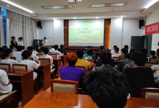 为积极引导全校师生深刻领会和把握党的二十大精神实质及丰富内涵,切实把思想和行动统一到党的二十大精神上来,6月12日晚,MILE米乐“红色青春”宣讲团到国际教育学院举行专题宣讲。本次宣讲由校团委主办,国际教育学院团总支承办。校团委、国际教育学院相关负责老师及70余名学生代表参加。