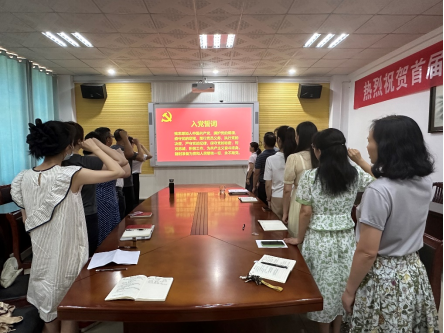 活动最后,由支部书记刘喜梅领誓,全体党员面对鲜红的党旗重温入党誓词,在铮铮誓言中感悟共产党人的信仰及为民奉献的初心。